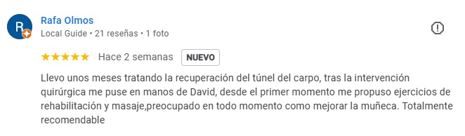 Rafa llegó a la clínica después de pasar por quirófano para tratar el túnel carpiano. Una operación delicada, que aunque soluciona el problema, deja el reto de recuperar movilidad, fuerza y confianza en la mano. Y ahí es donde David entra en escena: sin bata de laboratorio ni varita mágica, pero con algo mucho mejor… conocimiento, experiencia y un trato que te hace sentir que estás en las mejores manos.